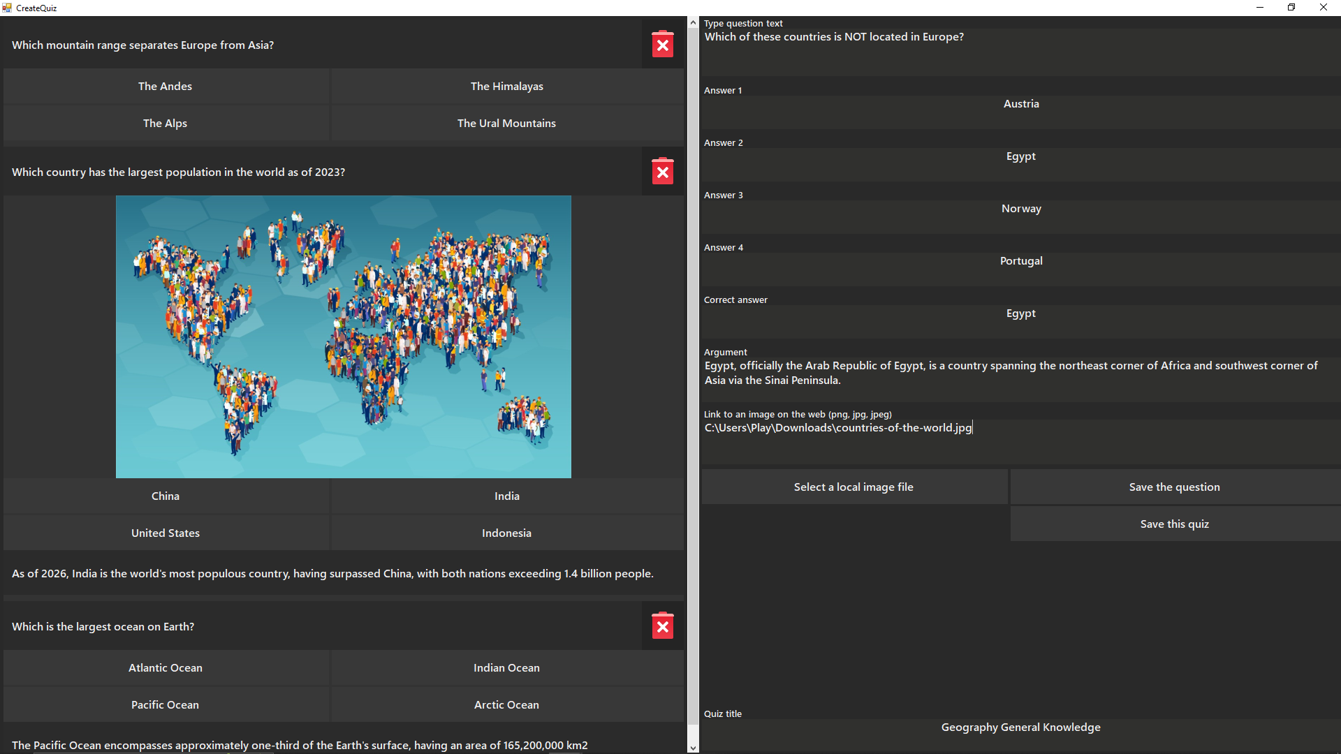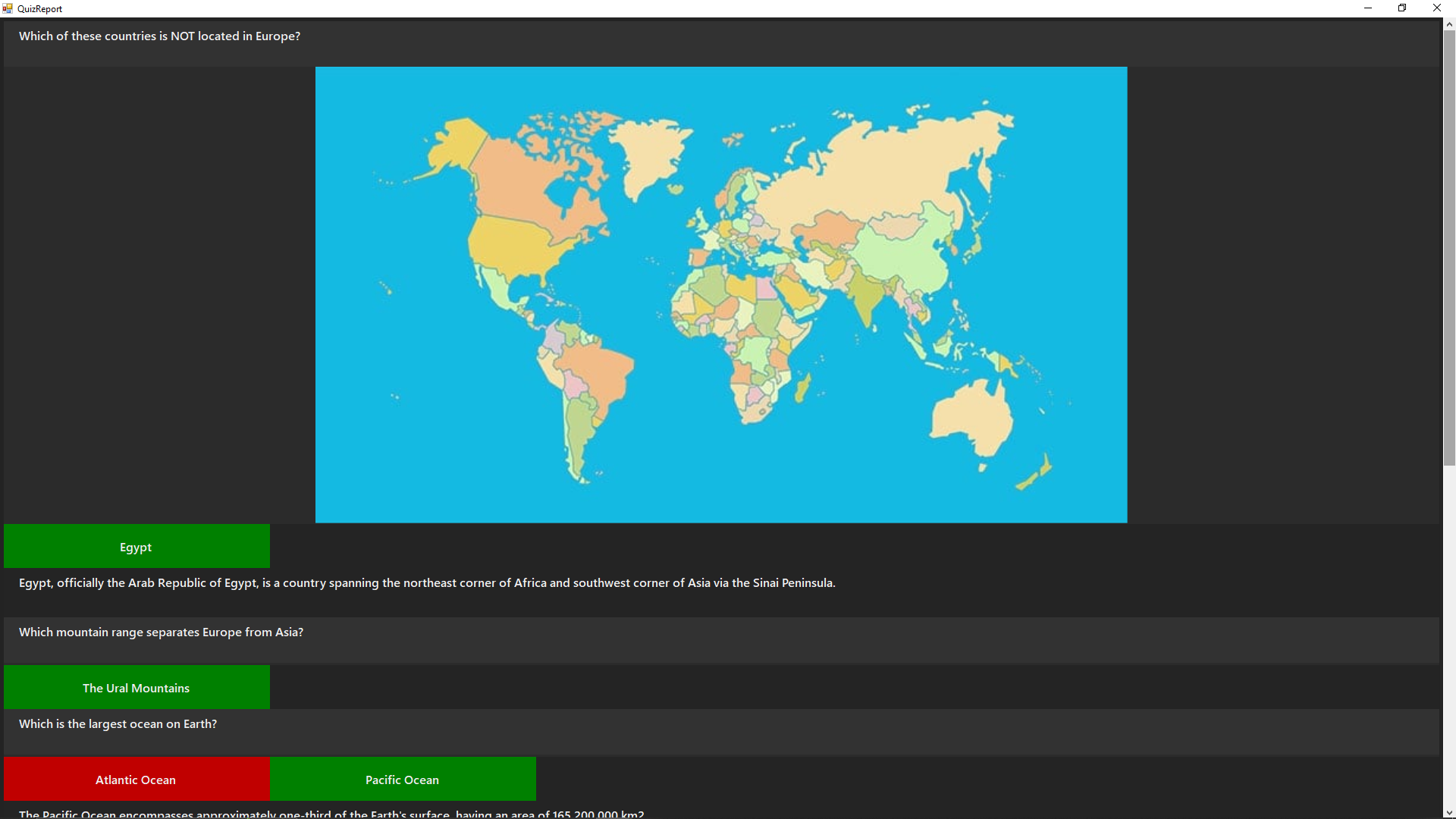 Showing questions and their answers (also, the wrong one, if necessary), as well as argument and the question image.